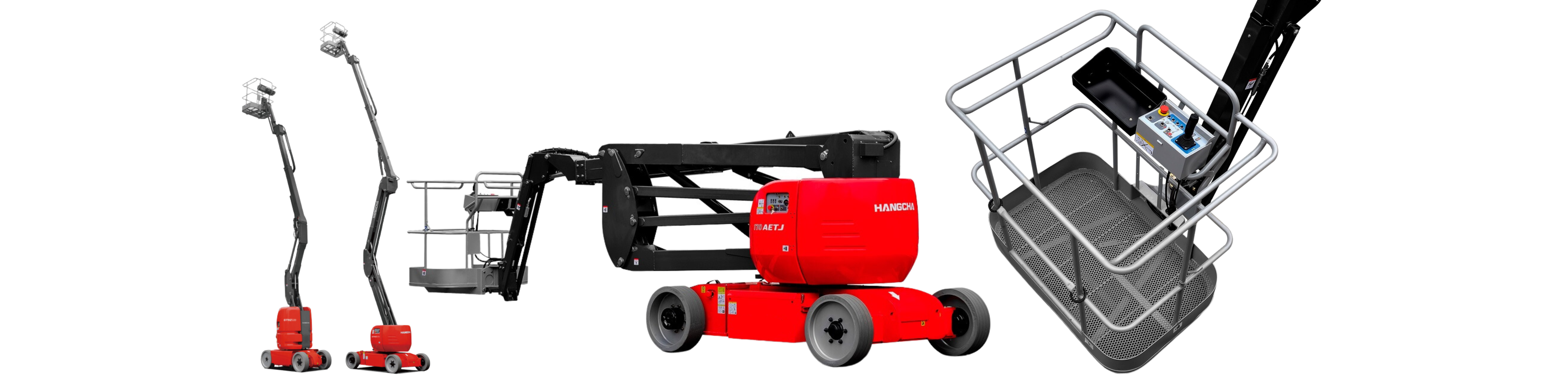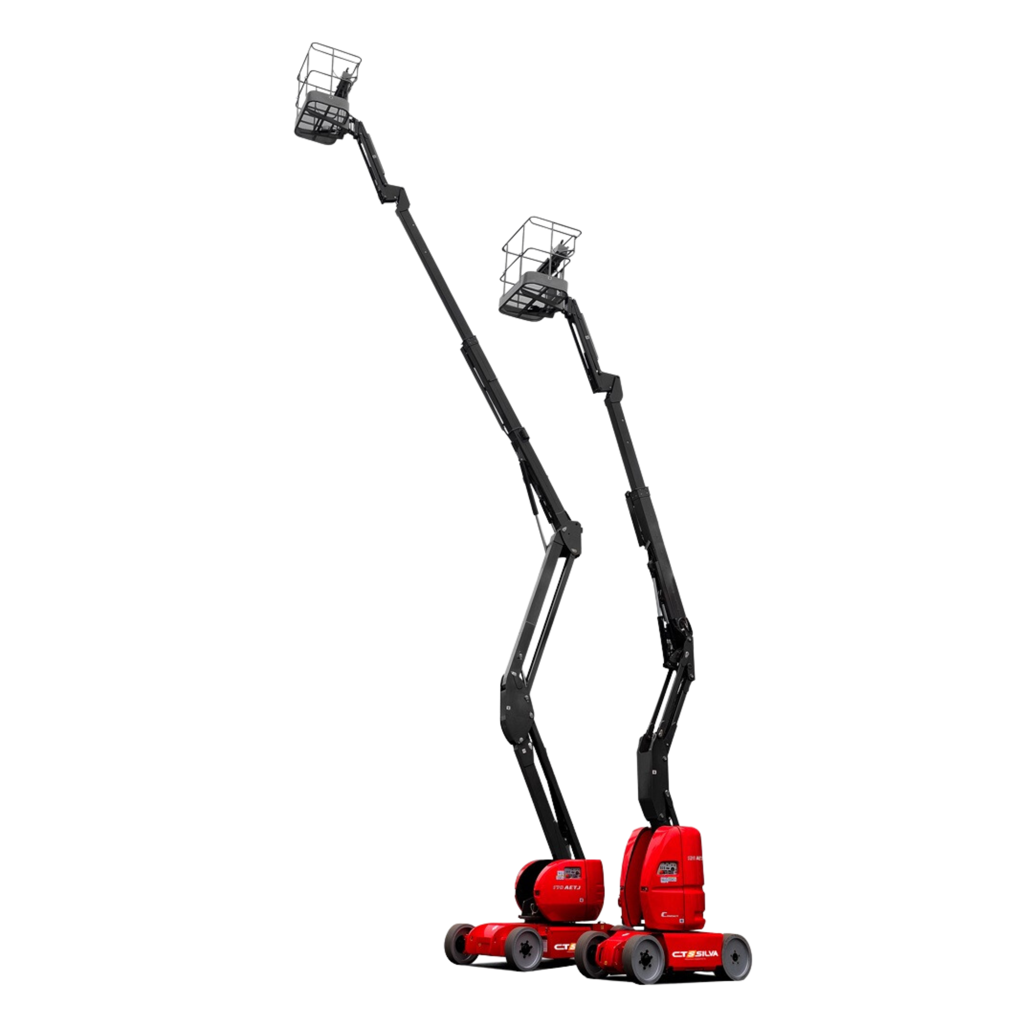 Esta máquina possui lança articulada que pode atravessar obstáculos. Pode transportar duas pessoas e algumas ferramentas na cesta. A máquina permite operá-la em locais limitados com design estreito e sistema de giro de pequeno raio.