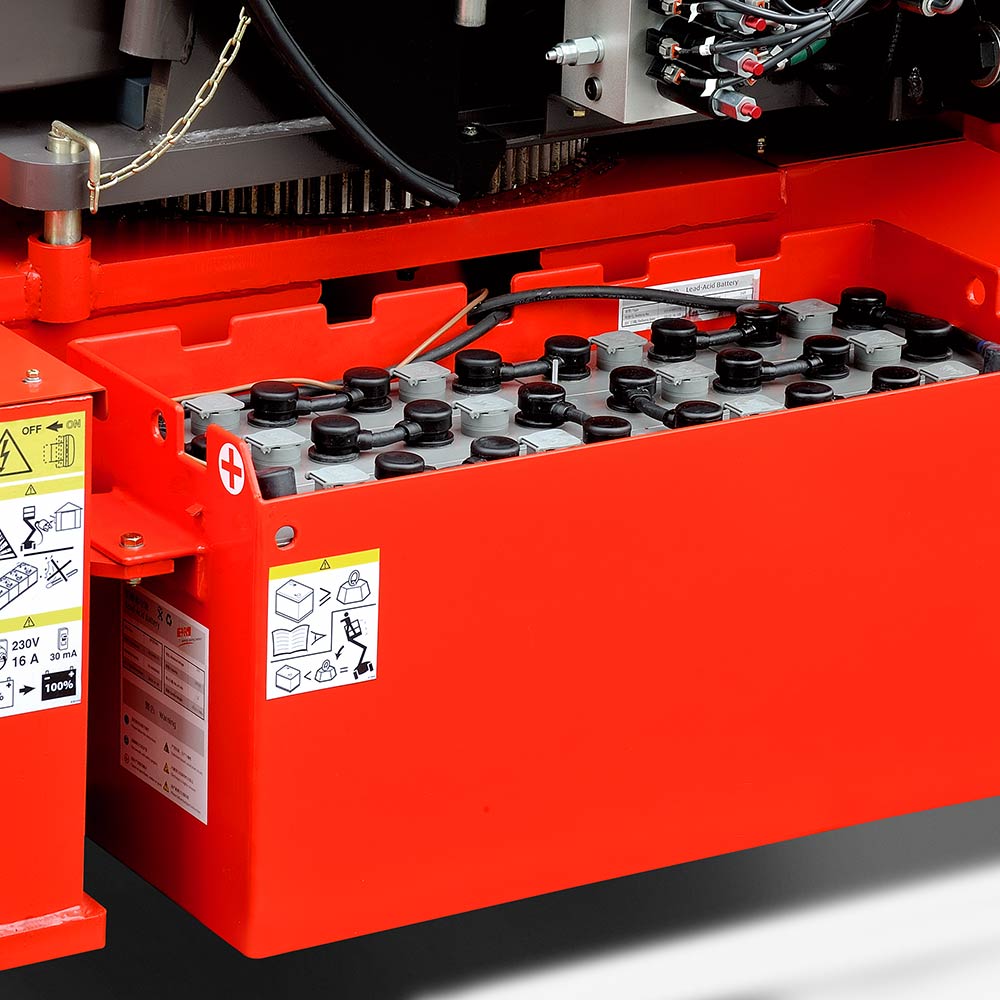 Equipada com um sistema de caminhada de acionamento elétrico, esta plataforma é perfeita para uso interno, com emissão zero e baixo ruído.